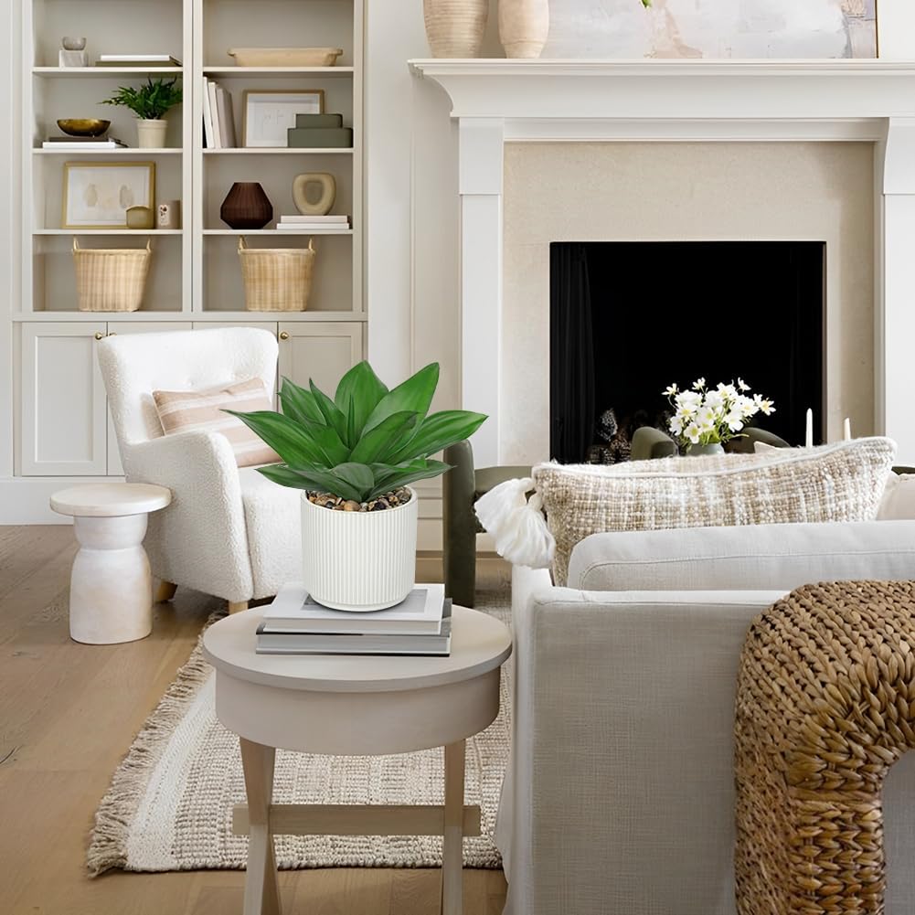 - Perfect Size: Artificial succulents plant in white pots total height: 8.2", pot: 4.3"W x 3.9"H; Please read the dimensions carefully. Succulent agave plants artificial will easily catch you eyes, bring your home a vibrant sense of greenery