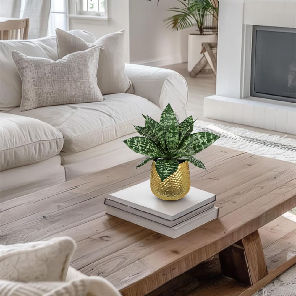Hollyone Artificial Snake Plants 9" Faux Agave Succulent Plant Potted in Gold Metal Pot Fake Sansevieria Aloe Tropical Plant for Desk Modern Office Home Bathroom Indoor Outdoor Decor
