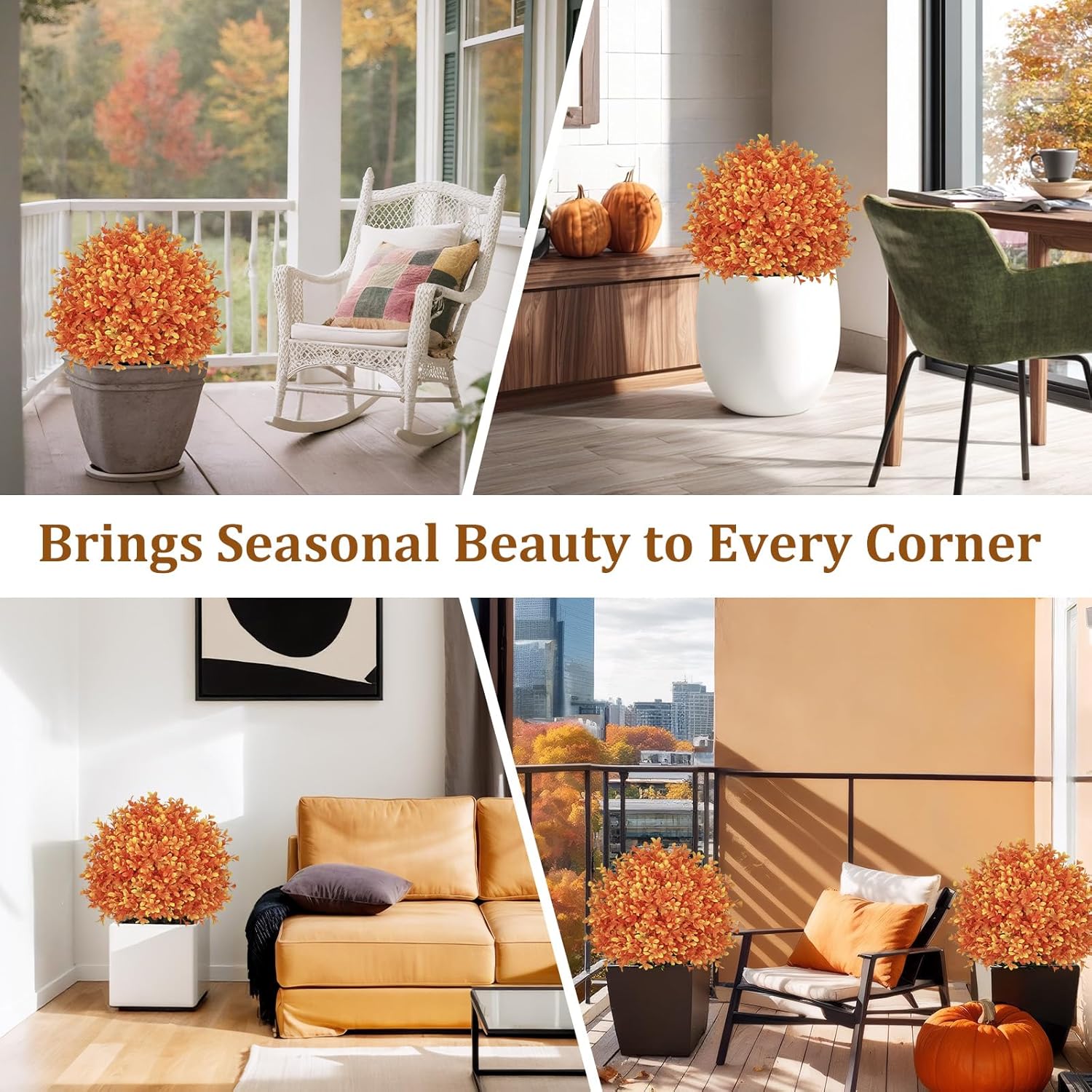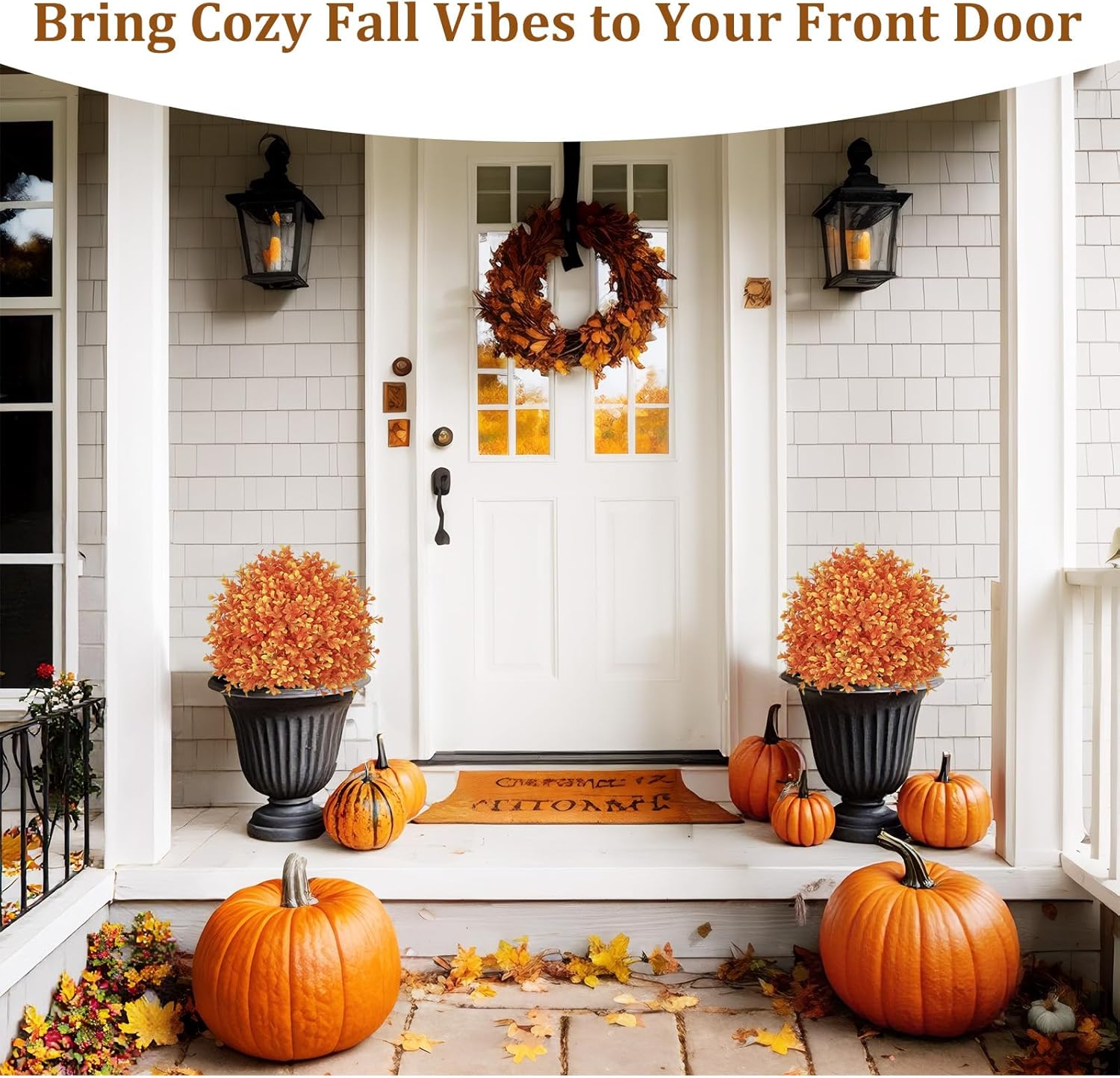 - Realistic Fall Color & Texture: Each faux topiary ball bush features realistic autumn-toned boxwood foliage in deep orange, these boxwood plants look like real fall foliage. Each ball bush features a full, lifelike shape—perfect artificial outdoor shrubs for seasonal curb appeal.